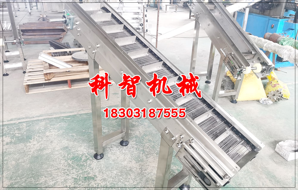 毛豆清洗加工線轉彎提升網帶輸送機特點 一:毛豆清洗加工線轉彎提升網帶輸送機的概述 :網帶輸送機舉足輕重是使喚鏈子與鏈輪的嚙合傳動來輸送的。網帶輸送機是固接在拉住鏈上的鏈板在品位與傾斜勢頭輸送物料的輸送機,以單片鋼板鉸接成環帶看作運輸機的牽引和承接元件承接面具有橫向隔片置放槽箱中使得環帶借隔片將煤刮運輸出。它由使得部門、張緊安上、拖床鏈、板條、使得及改向鏈輪、機架等一部分整合。在冶金、煤炭、化工 、電力、機械制造與經濟的其他工業部門中得到了廣泛的使用。 ...