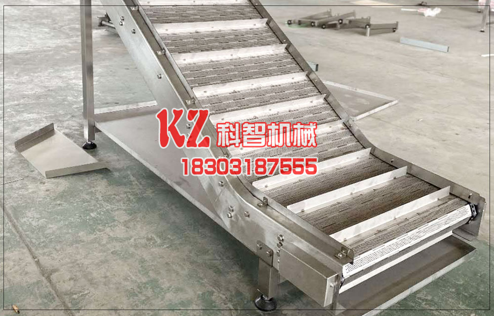 毛豆清洗加工線轉彎提升網帶輸送機特點